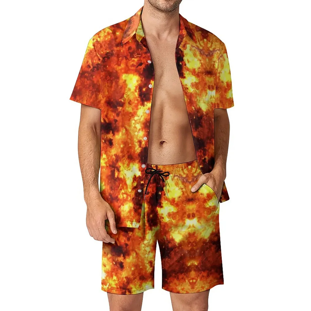 Caovogue Fire Blending 3D Printed Shirt Sets Men Casual Fashion Short Sleeves Shirts Oversized Beach Shorts Hawaiian Suits Summer Clothes