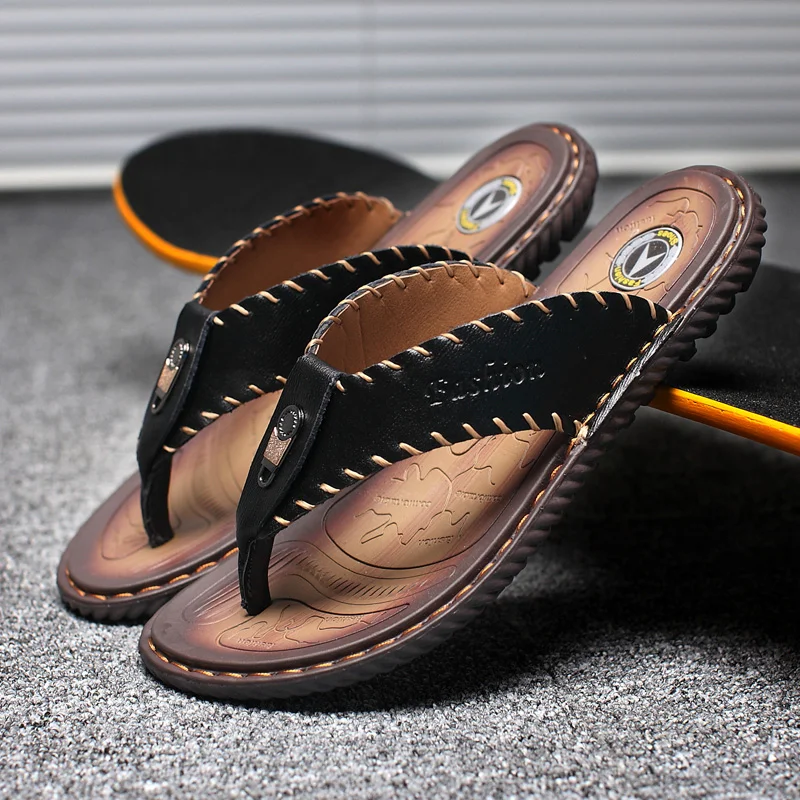 Damulin New Summer Men Slippers Leather Beach Flip Flops Male Comfortable Casual Shoe Fashion Fishing Summer Flip-flops Classic Outdoor