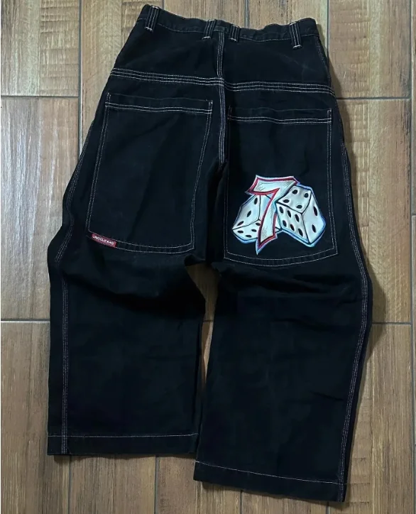 Enanhua 2025 New Retro Jeans Men's Y2K High Street Embroidered Hip Hop Fashion High Waist Straight Leg Loose Wide Leg Pants Street Wear