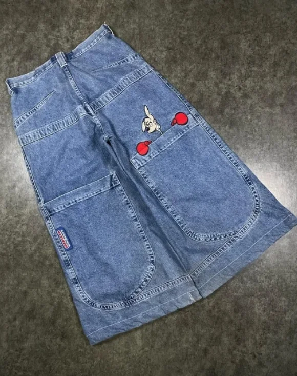 Enanhua 2025 New Retro Jeans Men's Y2K High Street Embroidered Hip Hop Fashion High Waist Straight Leg Loose Wide Leg Pants Street Wear