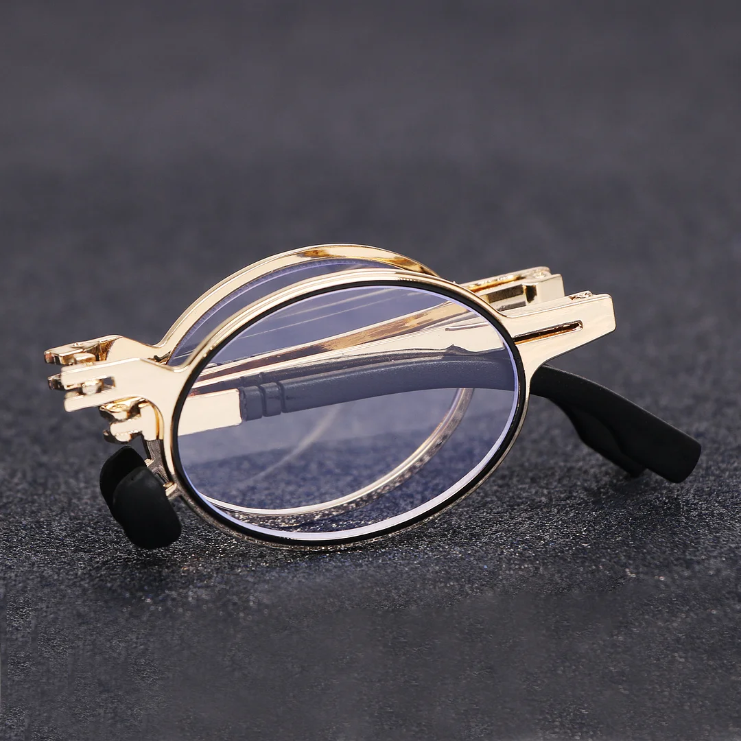 Men Portable Golden Folding Reading Glasses Square Eyeglasse Frame Anti Blue Light Eyewear Prescription Eye Diopter +100 - +400