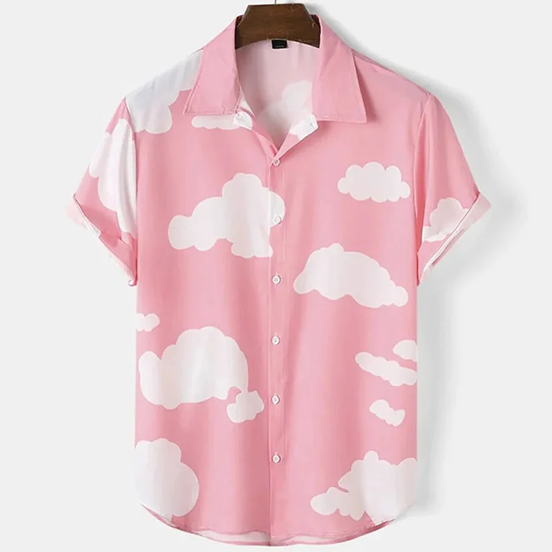 Enanhua Summer Clouds Print Men's Tee Shirt 2025 Hawaii Beach Shirts Holiday Party Men's Oversized Short Sleeve Street Blouse Clothing