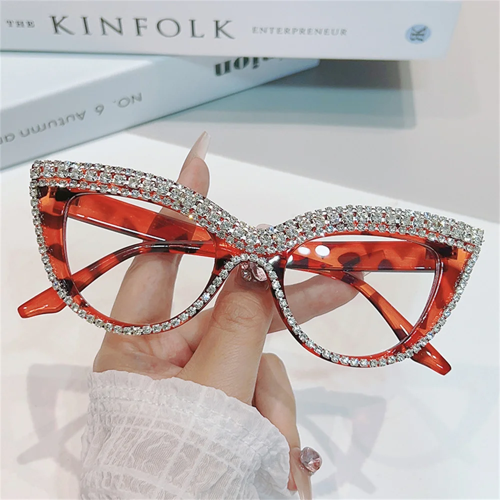 Vintage Luxury Brand Designer Diamond Cat Eye Glasses Frame Women Fashion Trending Crystal Sexy Myopia Reading Eyeglasses Frames