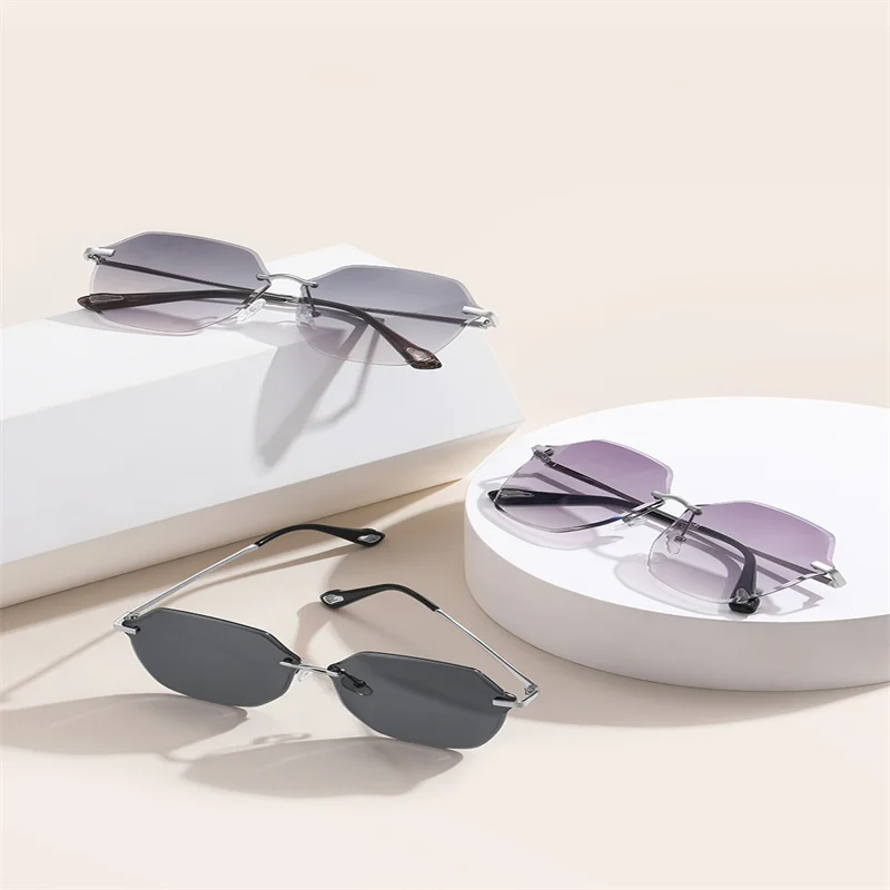 Square Rimless Sunglasses Women Retro Polygon Grey Gradient Sun Glasses Vintage Lady Summer Style Female Eyewear UV400