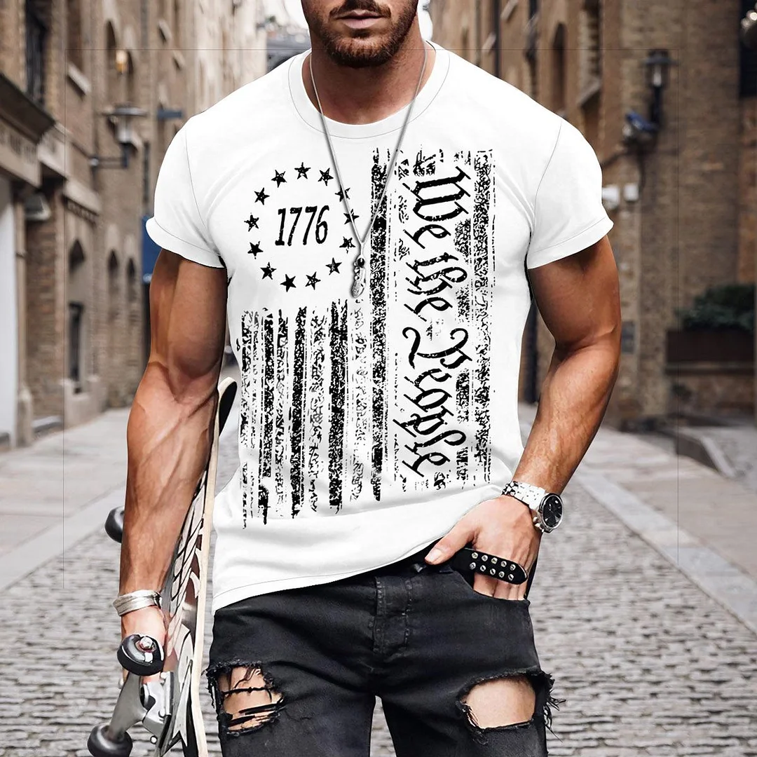 Eyuye 1776 National Flag 3D Printed Men's Knitwear Harajuku Street Top Fitness Sports Wear Breathable Loose T-shirt Men's Clothing