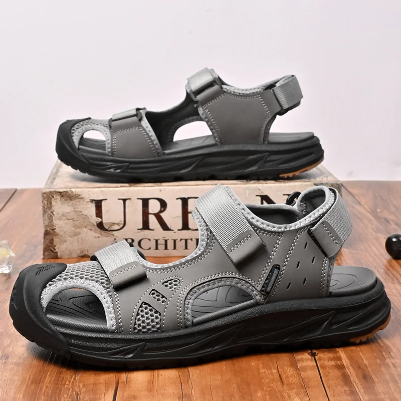 Gregorysupply Breathable Mens Beach Shoes New Large Size Men's Sandals Non-Slip Man Summer Flats Anti-collision Toe Male Roma Sneakers Sandaly