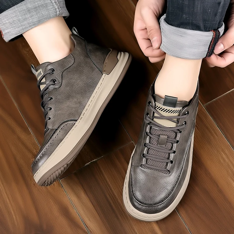 Gregorysupply Genuine Leather Mens Snow Shoes Outdoor Leisure Walk Sneakers Classics Warm Winter Ankle Boots Fashion Non-Slip Camping Footwear