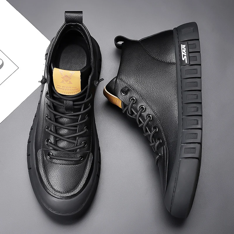 Gregorysupply Hot Sale Mens Sneakers Warm Plush Fur Winter Boots Autumn Winter Boots High Top Casual Leather Shoes Genuine Leather Ankle Boots