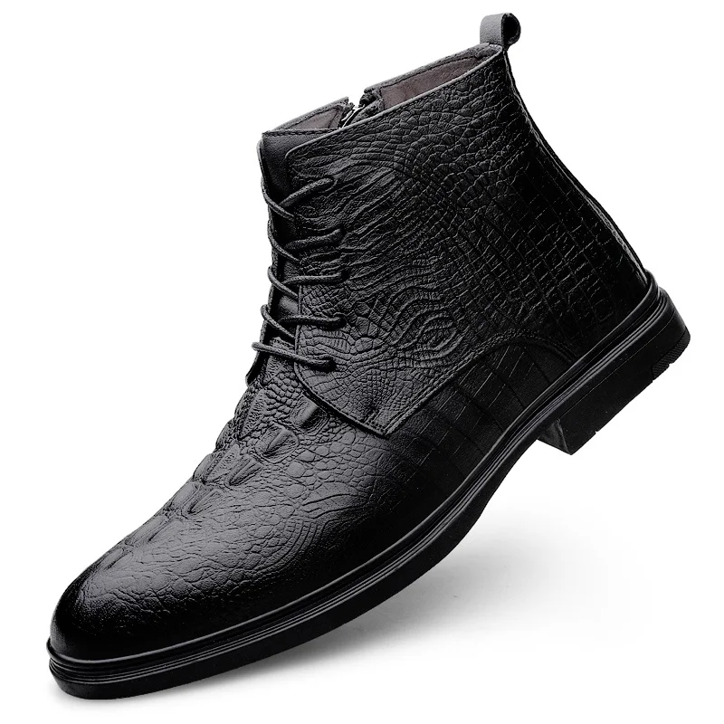 Kakacloud Brand Crocodile Pattern Men's Casual Shoes Luxury Man Black High Top Leather Boots Fashion Classic Men's High Top Lace Up Boots