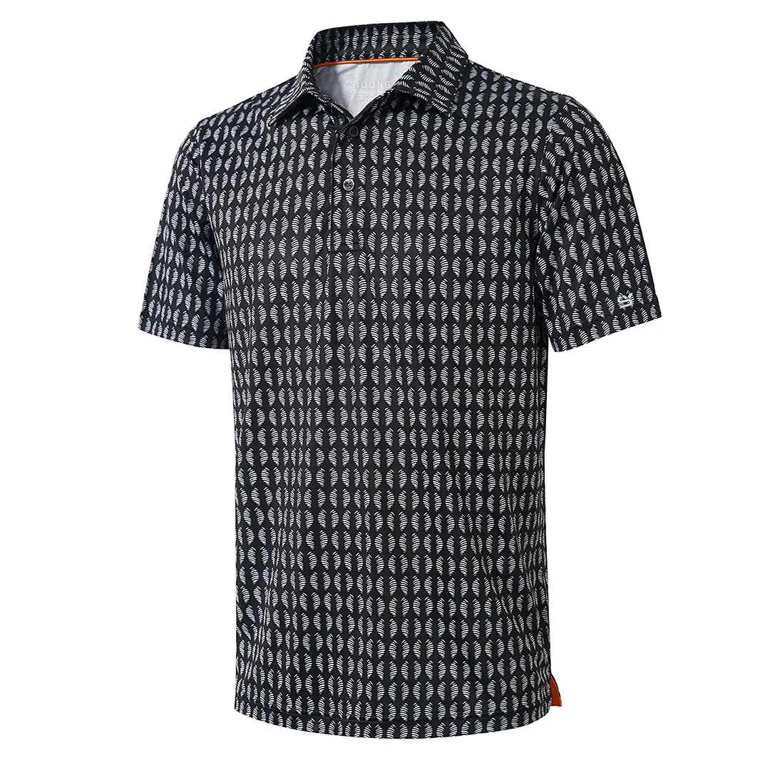 This golf polo for men use allover print stretch fabric with easy care and keep good shape, well-made stitching.