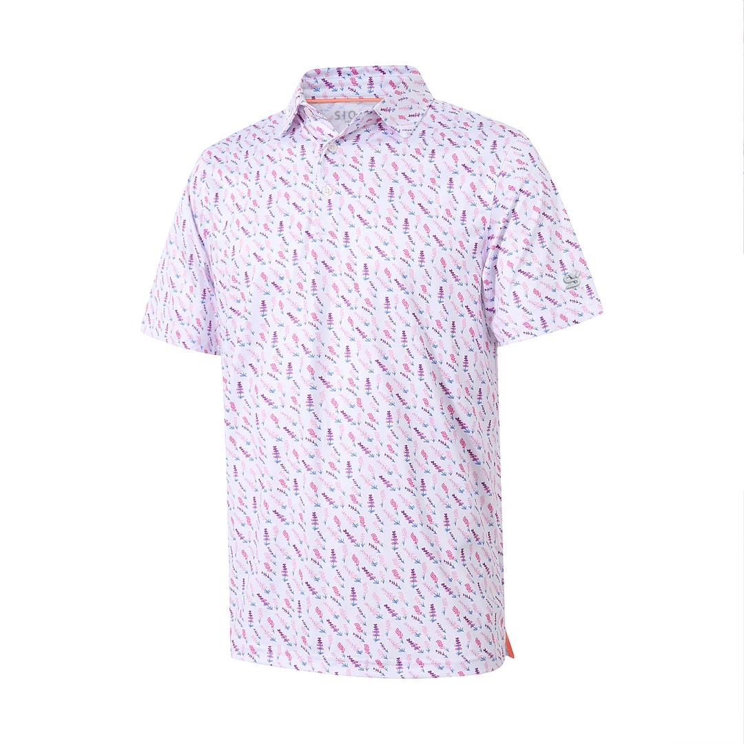 This golf polo for men use allover print stretch fabric with easy care and keep good shape, well-made stitching.