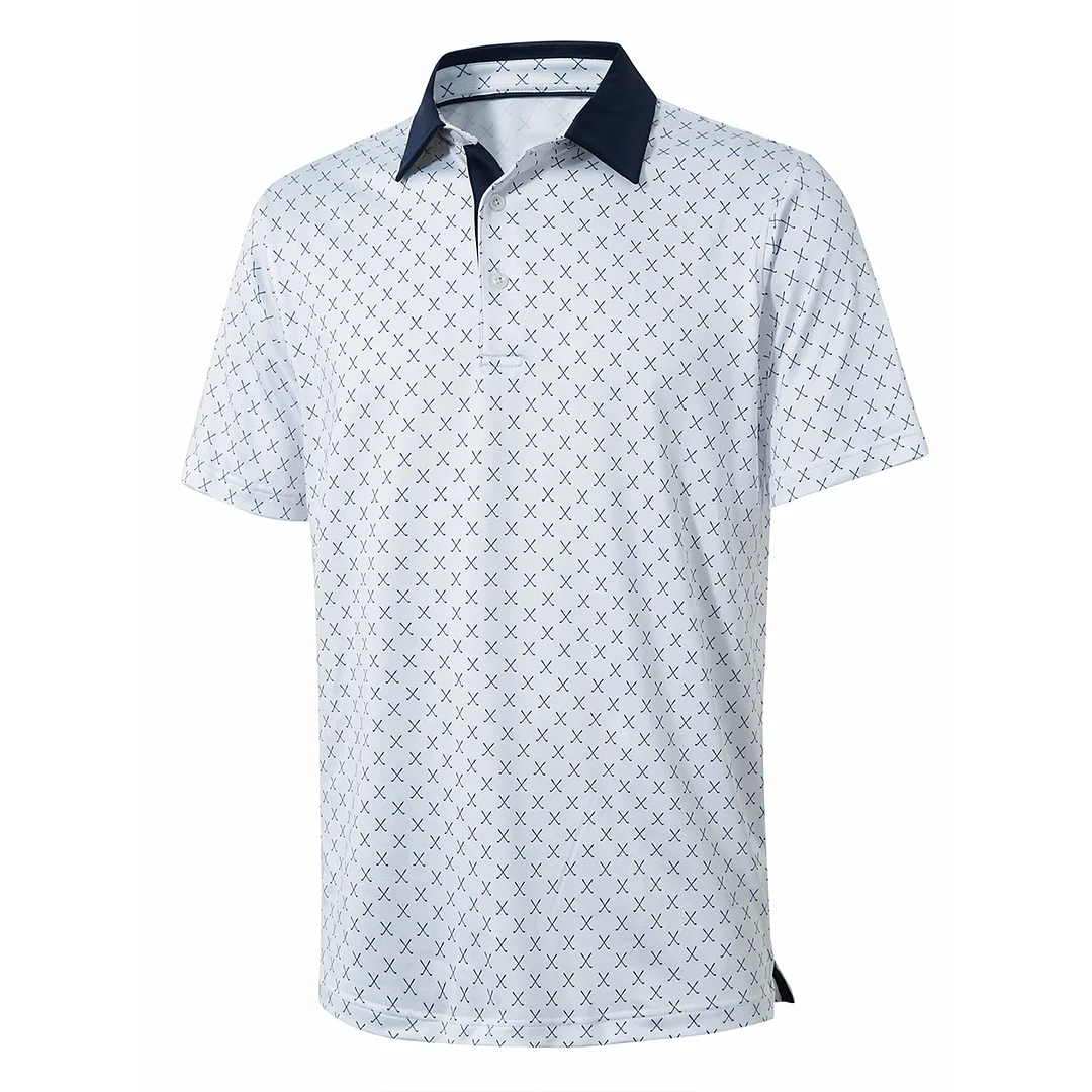 This golf polo for men use allover print stretch fabric with easy care and keep good shape, well-made stitching.