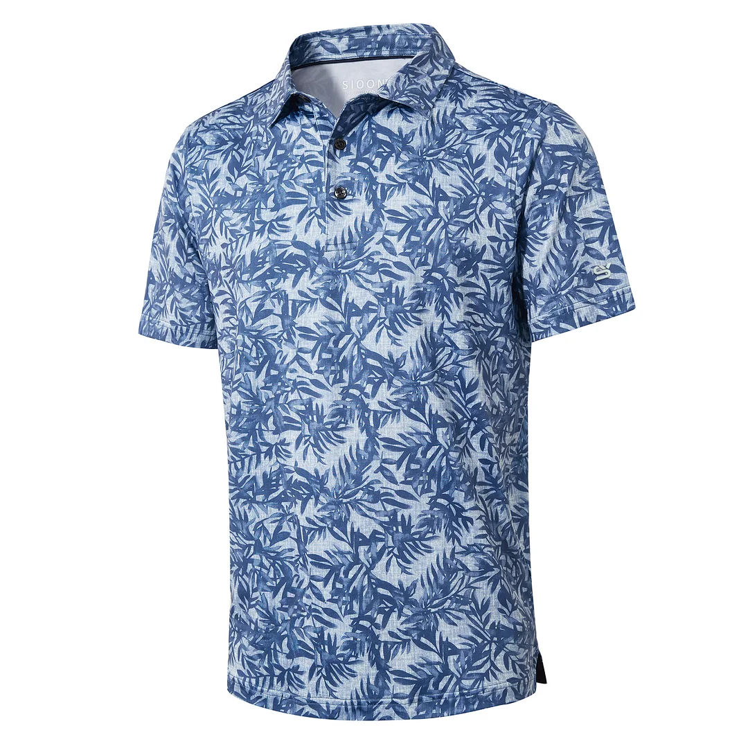 This golf polo for men use allover print stretch fabric with easy care and keep good shape, well-made stitching.