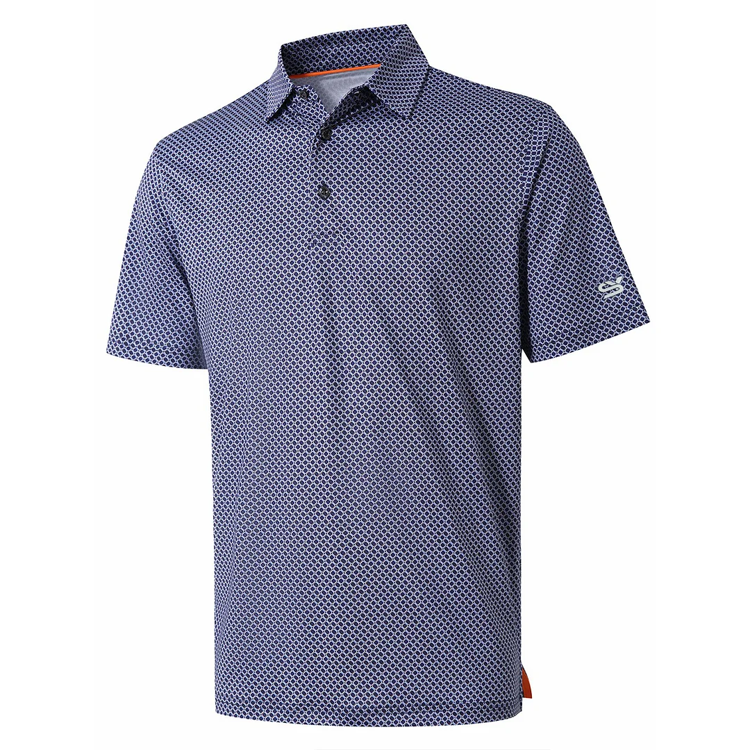 This golf polo for men use allover print stretch fabric with easy care and keep good shape, well-made stitching.