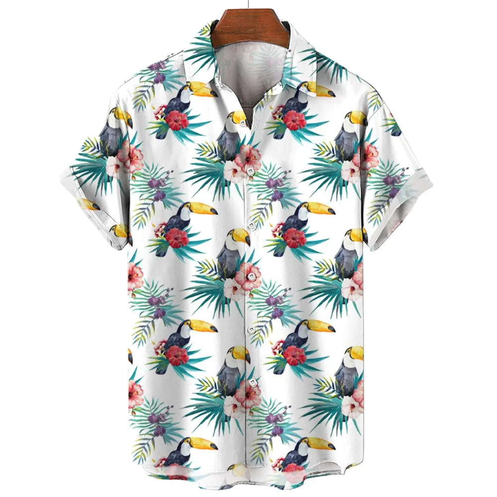 Lamalaba Hawaiian Men's Shirt Casual Toucan Print Short Sleeved Shirt Lapel Collar Tops Original Men's Tee Oversized Button Blouse Tops