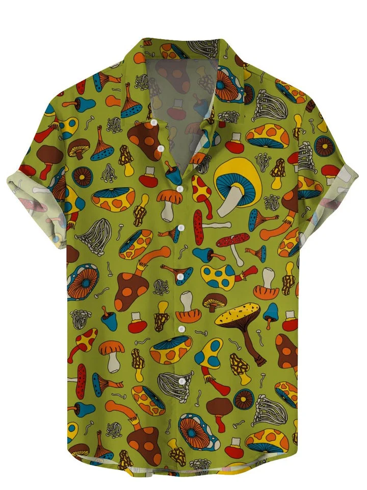 Lamalaba Men's Shirts color Mushrooml pattern 3D Print Tops Summer New Casual Holiday shirt Button Lapel Short Sleeves Unisex Clothing
