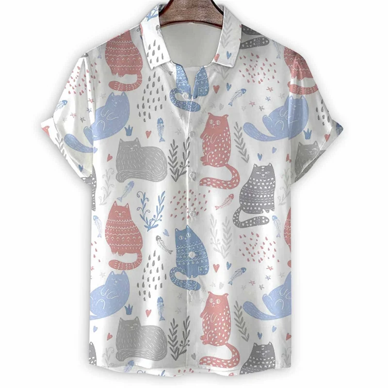 Linyimma Cartoon 3d Print Birds Hawaiian Shirt Men Summer Animal Painting Short Sleeve Tees Loose Button Shirts Tops Street Lapel Blouse