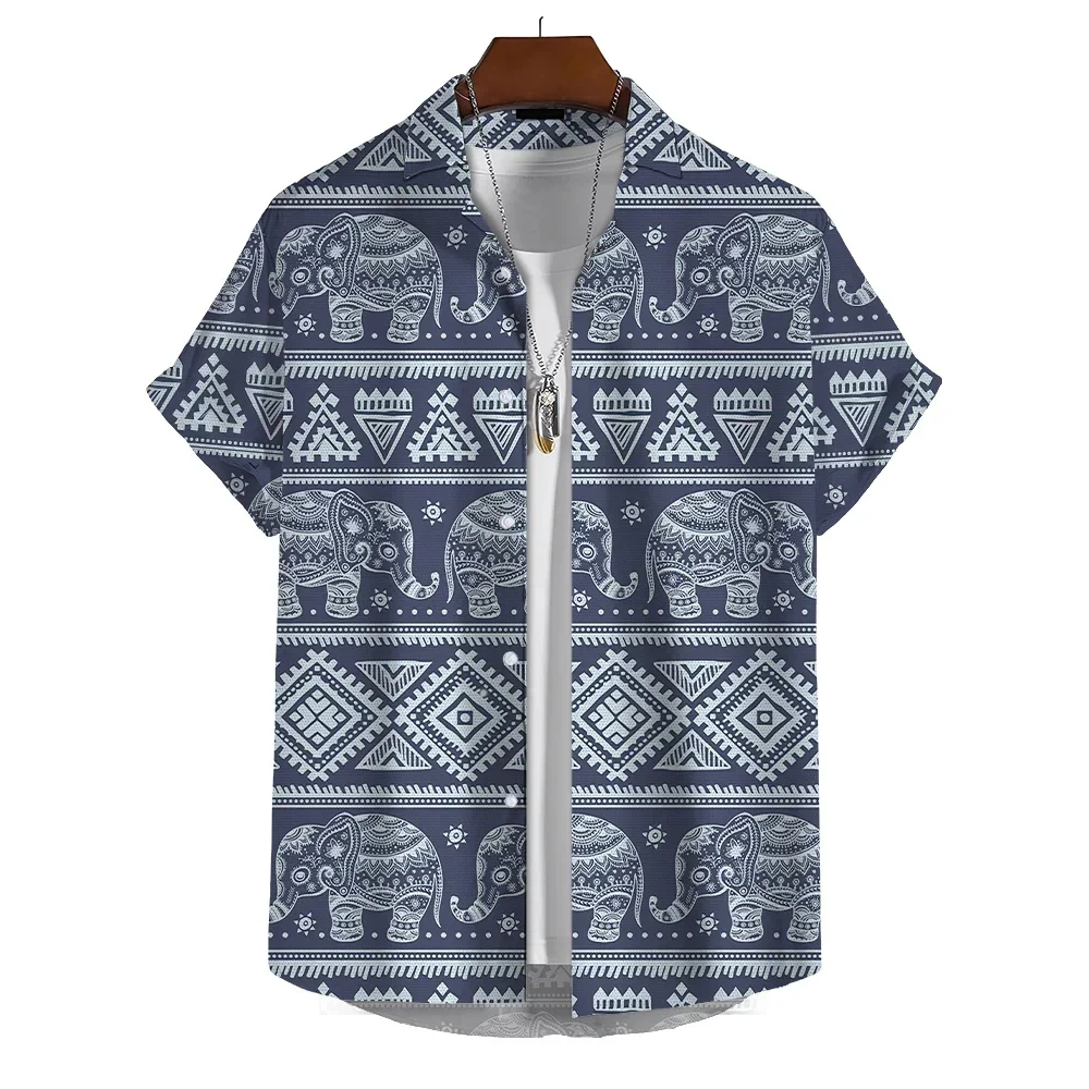 Linyimma Ethnic Style Elephant 3D Printed Shirt Man/Women Casual Fashion Short Sleeves Shirts Button Lapel Tops Oversized Unisex Clothing