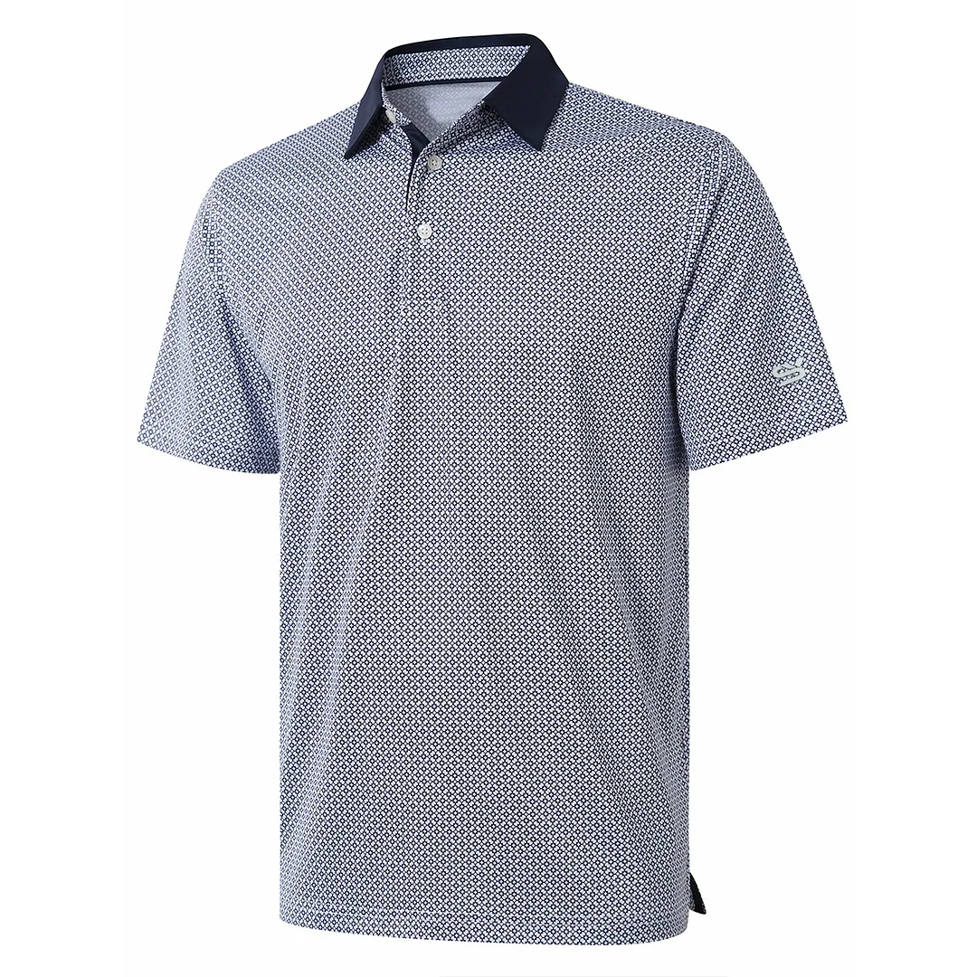 This golf polo for men use allover print stretch fabric with easy care and keep good shape, well-made stitching.