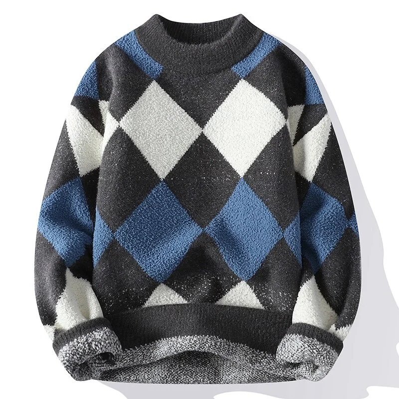 New Winter Loose Turtleneck Sweater Men Streetwear High Quality Fashion Mens Christmas Sweaters Luxury Argyle Cashmere Pullover