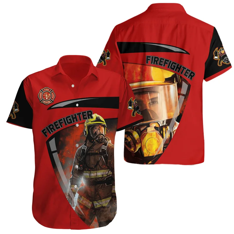Rinted Pattern : Firefighter Uniform Cosplay Graphic blouses Hawaiian Beach Shirts for men clothing Casual Vacation Short Sleeve Swim Surfing Lapel Blouse