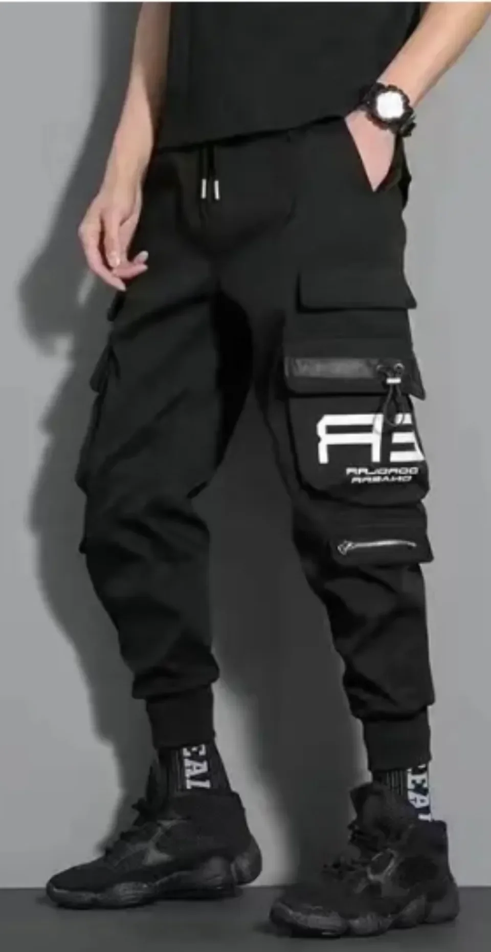 Pantalones informales para hombre y mujer, ropa de calle fina con cintas, pantalones de Jogging Harem, ajustados con pantalones Cargo múltiples bolsillos,