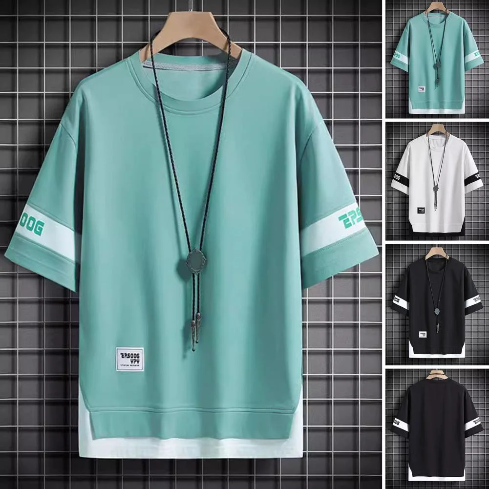Elevate your casual style with this versatile Men's Short-Sleeved t-shirt. Perfect for summer, this fake two-piece design exudes fashion-forward appeal. Pair it effortlessly with casual shorts, sweatpants, jeans, or cargo pants for a comfortable and trendy look.