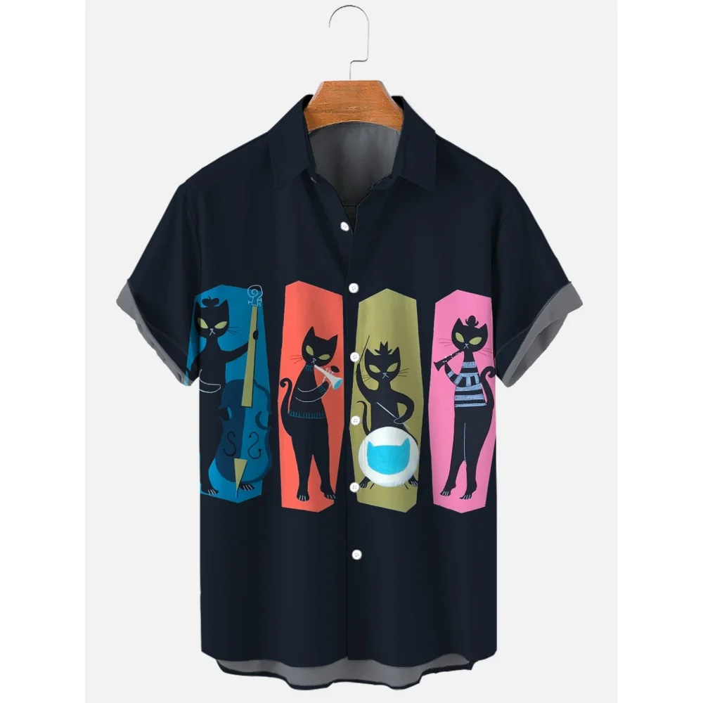 Xrcrm Animal Pattern Lapel Men Shirt 3D Print Man/Women Casual Fashion Short Sleeves Shirts Button Streetwear Oversized Unisex Clothes