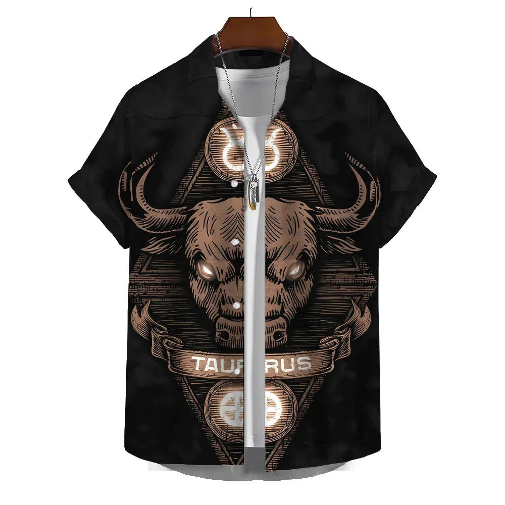 Xrcrm Constellation 3D Print Men Shirt Man/Women Casual Fashion Short Sleeves Shirts Button Lapel Streetwear Oversized Unisex Clothing