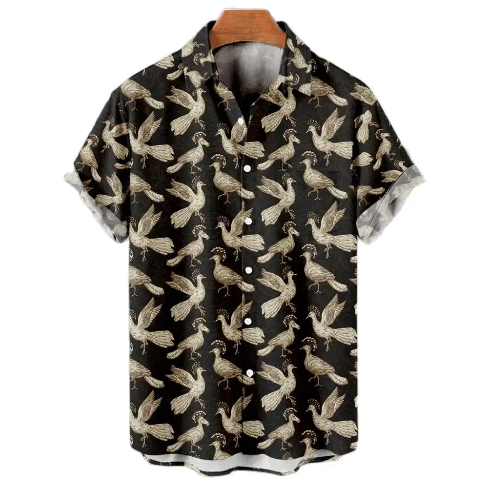 Xrcrm Crane 3D Printed High Quality Men Shirt Man/Women Casual Fashion Short Sleeves Shirts Button Lapel Tops Oversized Unisex Clothes