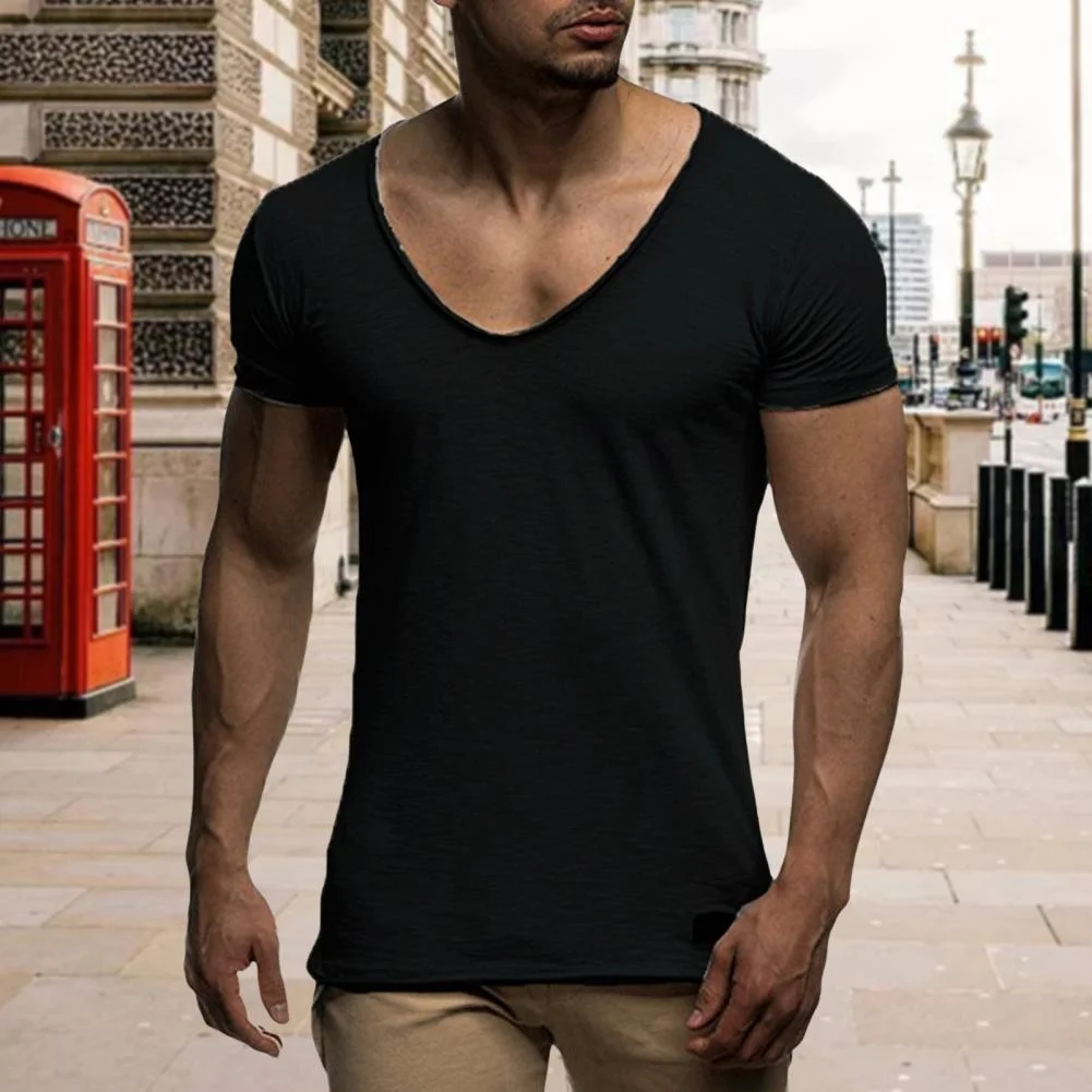 Elevate your casual wardrobe with our Men's Fashion V Neck T-Shirt, perfect for any occasion from lounging at home to hitting the gym or strolling the streets in style. This versatile t-shirt features a sleek solid color and a slim design that accentuates your physique, making you look effortlessly sexy.