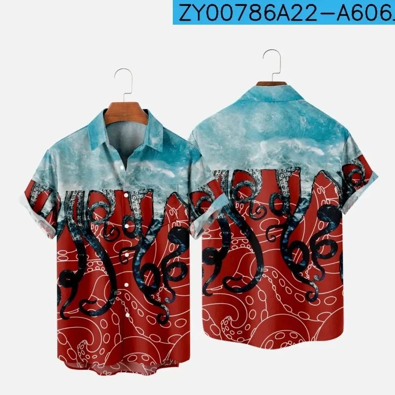 Xrcrm Squid Tentacles 3D Printed Shirt Man/Women Casual Fashion Short Sleeves Shirts Button Lapel Streetwear Oversized Unisex Clothing
