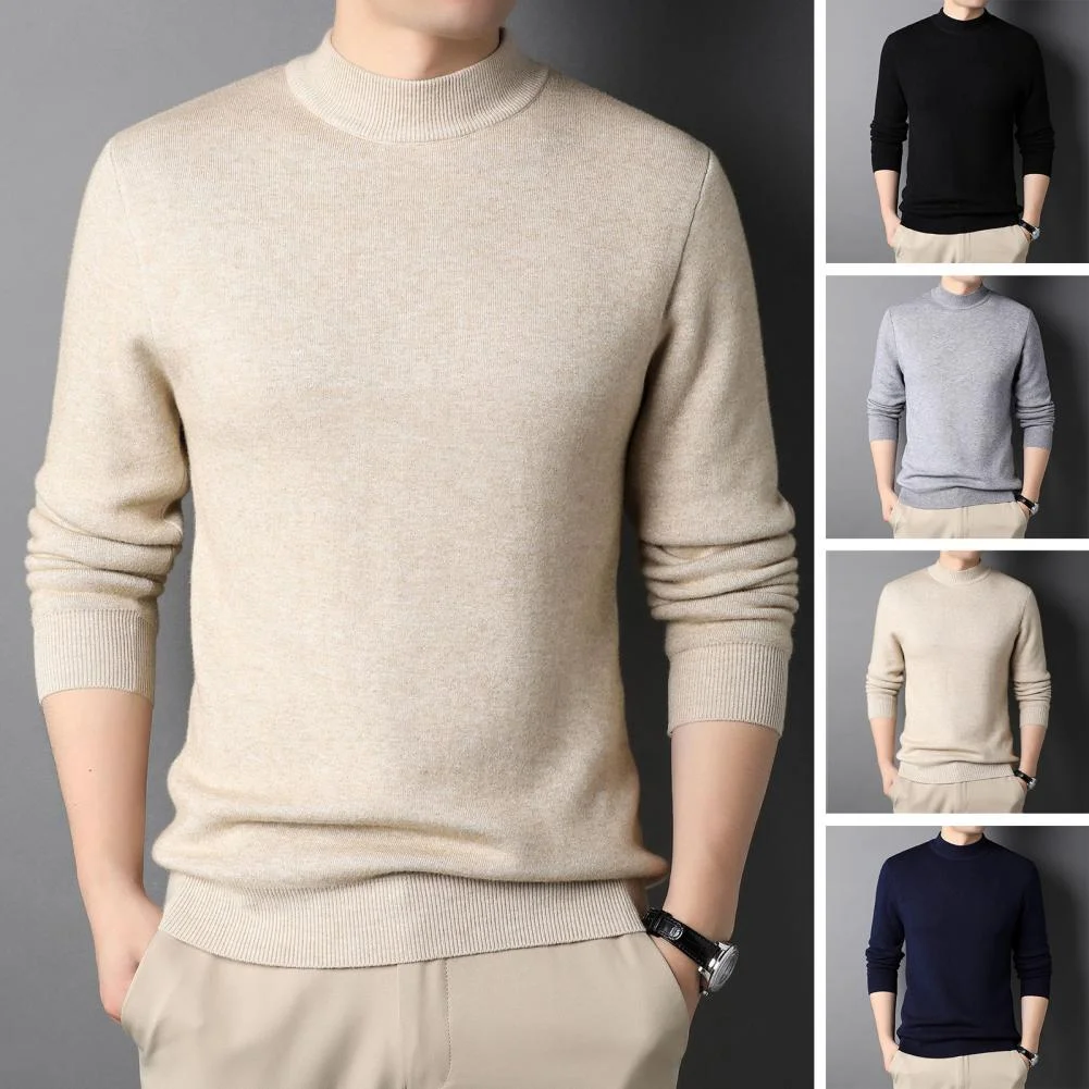 Men Fall Winter Sweater Knitted Solid Color Elastic Half-high Collar Long Sleeve Slim Fit Pullover Soft Warm Anti-pilling Men Bottoming Top