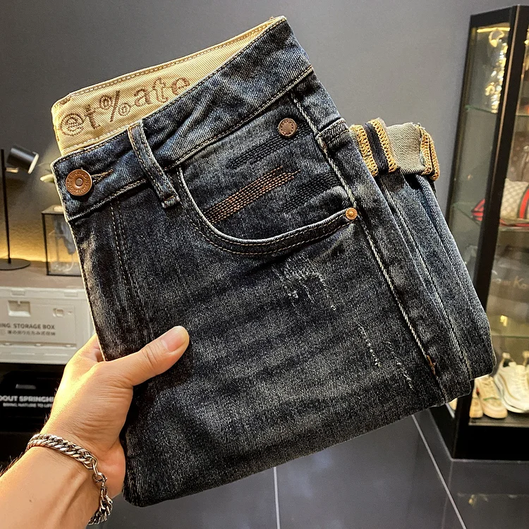 streetwear elastic American High-End Autumn Nine-Point Jeans Men's New Trendy Small Feet Harem Handsome Casual Lo