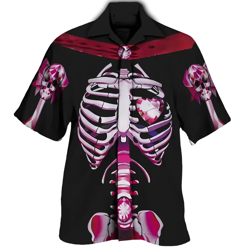 Traceeye Funny Skeleton 3D Print Men Shirt Man/Women Casual Fashion Short Sleeves Shirts Button Lapel Streetwear Oversized Unisex Clothes