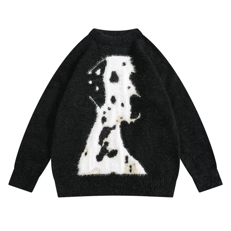 Traceeye Men's Cute Dog Jacquard Imitation Mink Velvet Sweaters Autumn Winter Trendy Brand Long-sleeved Warm Casual Pullovers Knitwear