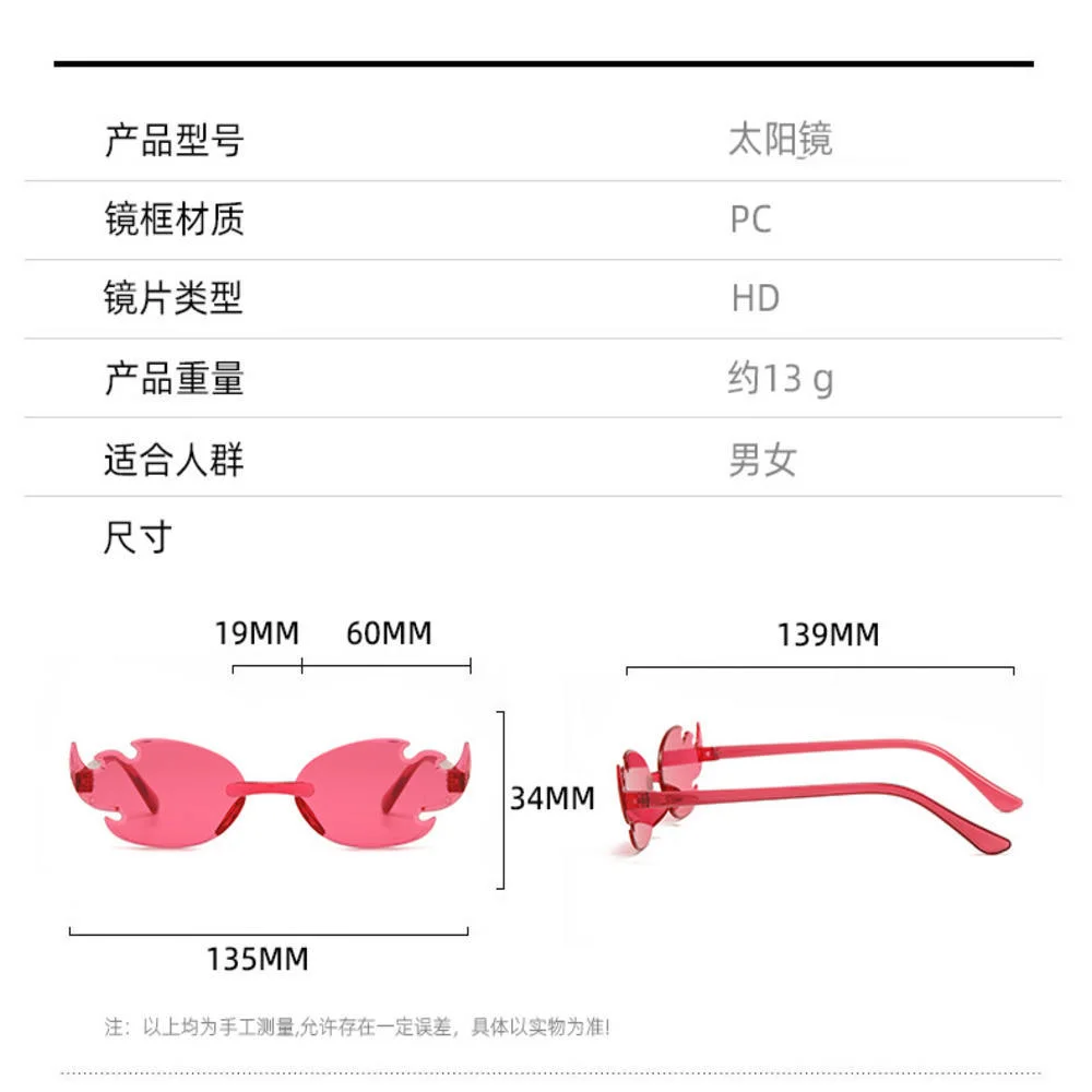 Red Flame Shaped Sunglasses European Personality Trend Frameless Colorful Ball Party Color Glasses Beach Photography Sunglasses